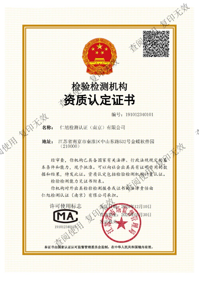 公司具有江蘇省市場監(jiān)督管理局核準頒發(fā)的檢驗檢測機構(gòu)資質(zhì)認定證書 ,并多次成功通過(CMA)資質(zhì)認定擴項評審,可獨立開展授權(quán)范圍內(nèi)的檢驗檢測和鑒定評審活動。我司始終嚴格按照“公正、科學、專業(yè)、高效”的質(zhì)量方針,秉承“仁信為本,創(chuàng)新為魂,品質(zhì)為根,客戶為心”的經(jīng)營理念,結(jié)合自身優(yōu)勢,積極探索“產(chǎn)教融合”新模式,現(xiàn)與南京工業(yè)職業(yè)技術(shù)大學共建“南工·仁旭特種裝備檢驗檢測研究所”,聚集校企科研力量,組建一支高素質(zhì)、經(jīng)驗豐富、行業(yè)領(lǐng)域廣的專家團隊,行業(yè)覆蓋檢驗檢測、司法鑒定、教育培訓等多種類領(lǐng)域。