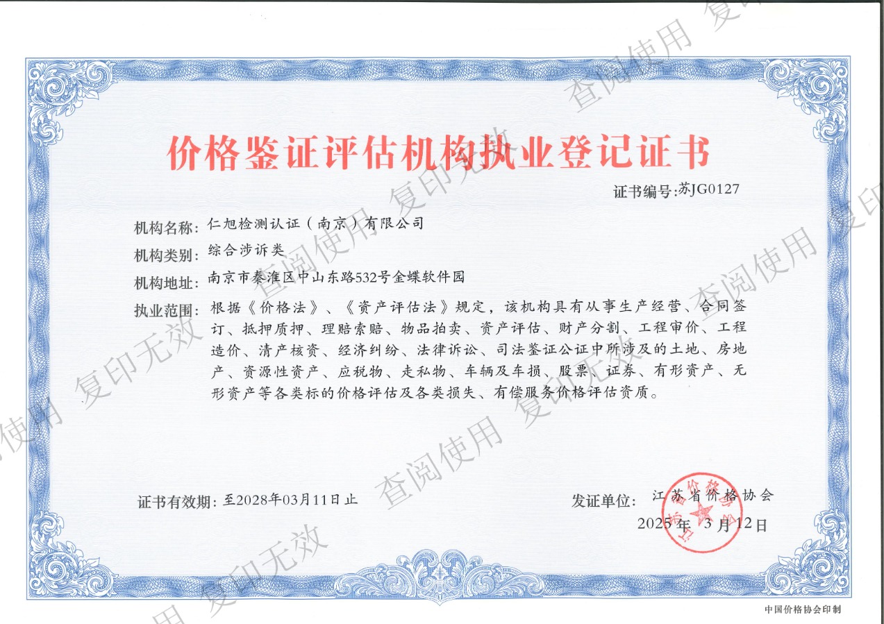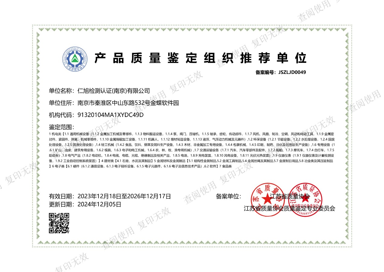 仁旭檢測認證(南京)有限公司成立于2019年,是一家集檢驗檢測、產(chǎn)品質(zhì)量鑒定、機動車鑒定評估、價格鑒證評估、技術(shù)咨詢培訓服務(wù)等于一體的第三方綜合性服務(wù)機構(gòu),致力于為政企和客戶打造全方位優(yōu)品質(zhì)的解決方案。